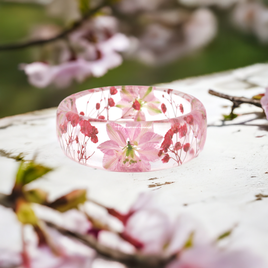 Botanical bangle bracelet, Real Pink flower bangle