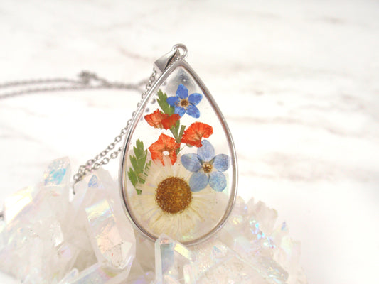Summer sunshine pressed flowers necklace Handmade resin jewelry
