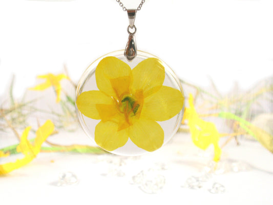 Buttercup flower Resin Pendant, Pressed Flower Jewelry, Real flower Necklace