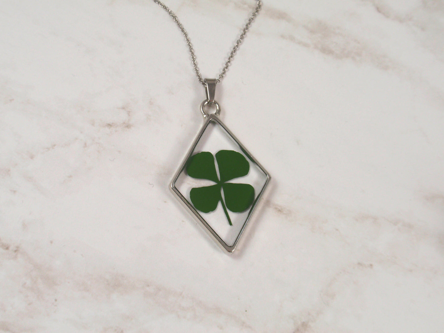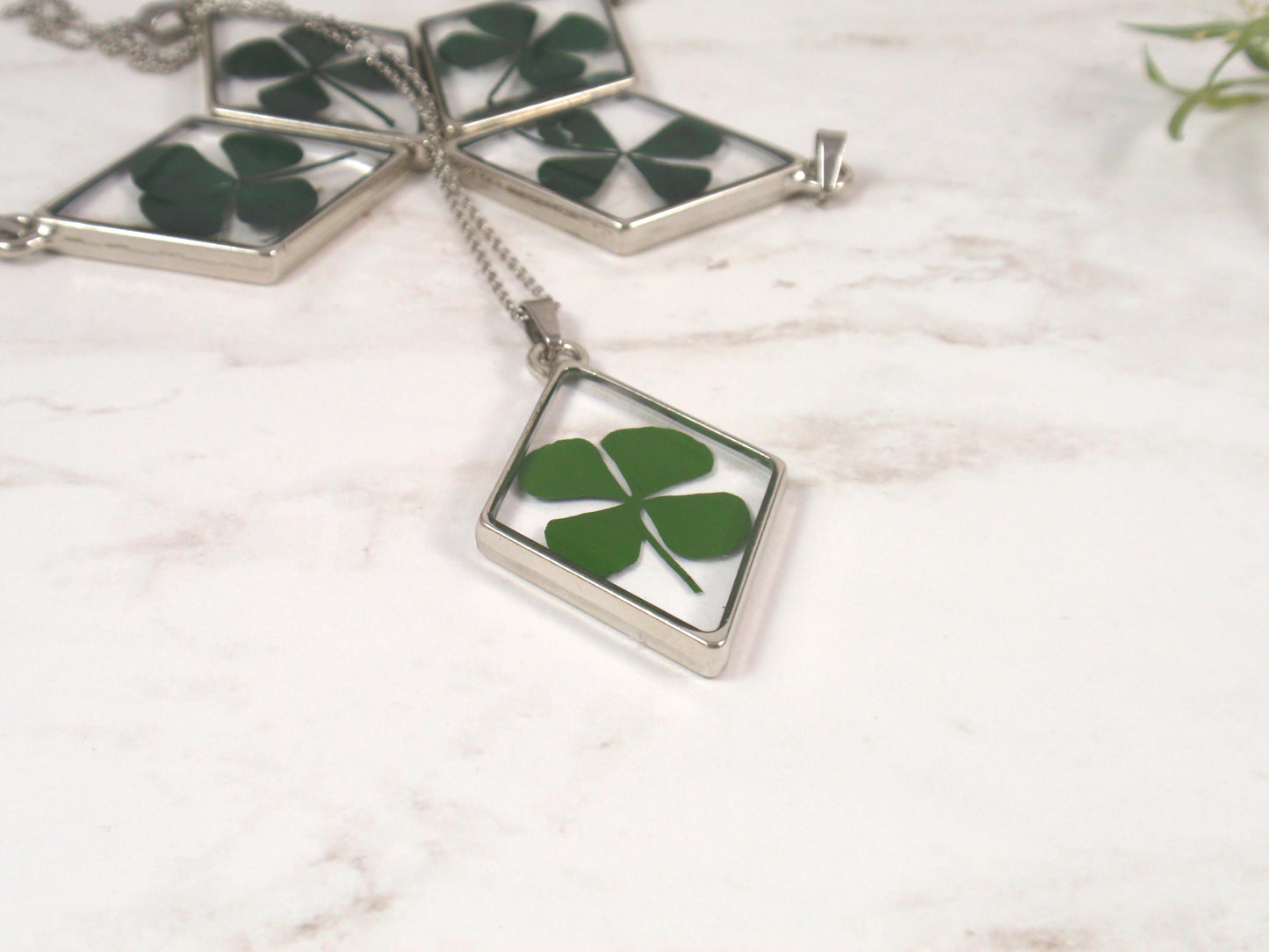 • This listing is for a lovely botanical necklace that features real dry four-leaf clover in jeweler's grade eco resin. This Elegant Pendant will make an Eye-Catching Accessory for Any Outfit.